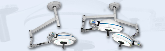 Shadow less Ceiling Operating light combination that provides the superior performance for all kinds if surgeries. Compact, Light weight and sealed dome made of aluminum consists of glass dichroic reflector to provide cool, bright and homogenous illumination.The use if dichroic glass reflector and athermanous glass filter in combination reduces the emitted IR to a minimum and provide the cool and colour corrected light at surgical site and for the surgical team.